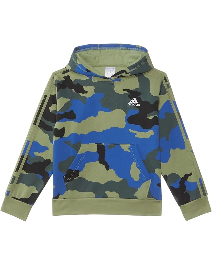 - Streetwear meets snuggles: The adidas® Kids AOP France Camo Hooded Pullover is the perfect blend of style and comfort. Designed for effortless cool, this regular-fit hoodie features a classic hooded neck, long sleeves, and a convenient pull-on design for all-day wear. Crafted from ultra-soft fleece, it wraps your child in warmth, perfect for chilly days. The striking all-over camo print brings edgy flair, while the signature 3-Stripes and embroidered adidas logo add an iconic touch.