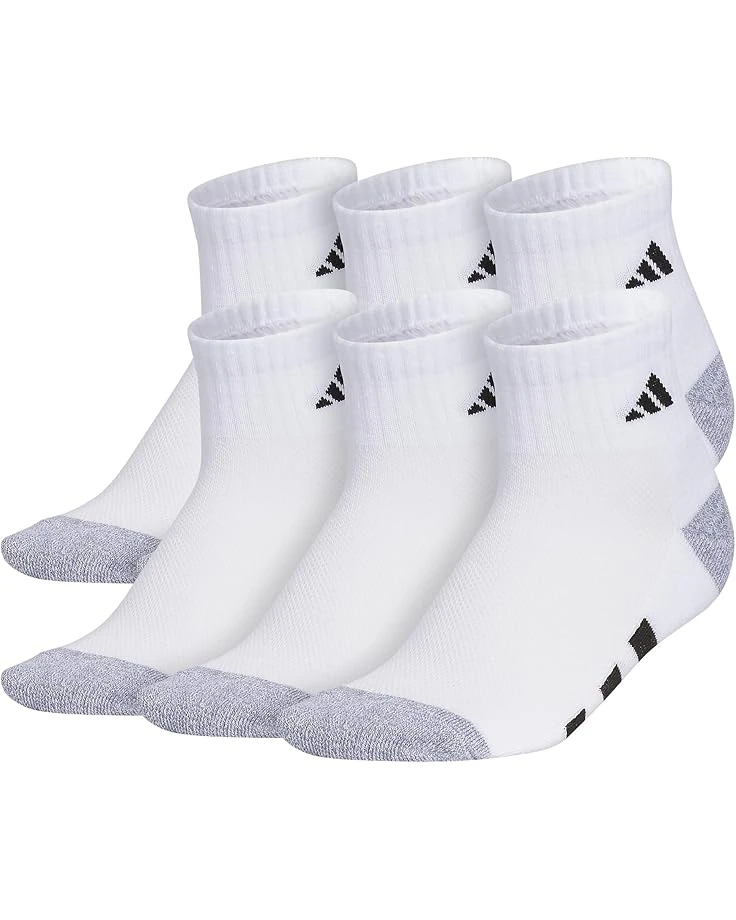 - Layer your feet for extra comfort wearing adidas® Kids Athletic Cushioned 6-Pack Quarter socks. The socks feature moisture-wicking yarn to keep feet dry from sweat and cushioned in the foot for comfort and durability. Reinforced heel and toe offer durability while mesh top of foot ensure breathability. They have ribbed cuffs for secure fit and signature stripes.