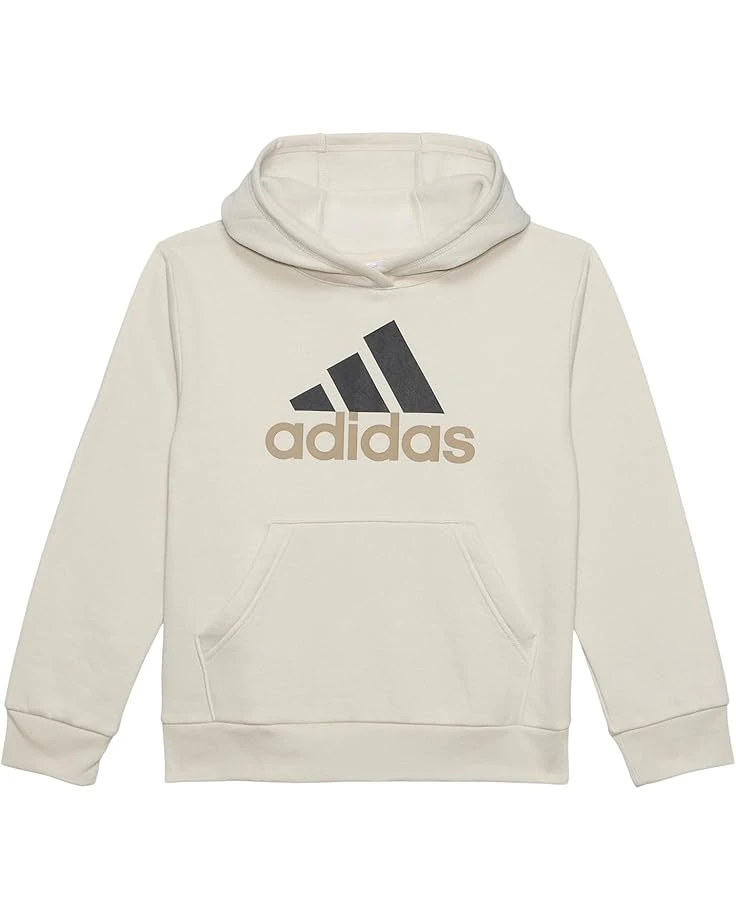 - This adidas® Kids Essential Hooded Pullover is about to be his new favorite. Soft fleece feels warm and soft against the skin, while the adidas® Badge of Sport logo shows off his connection to sport. The regular-fit pullover features a hooded neck, long sleeves with banded cuffs, a kangaroo pocket on the front, and a straight banded hem.
