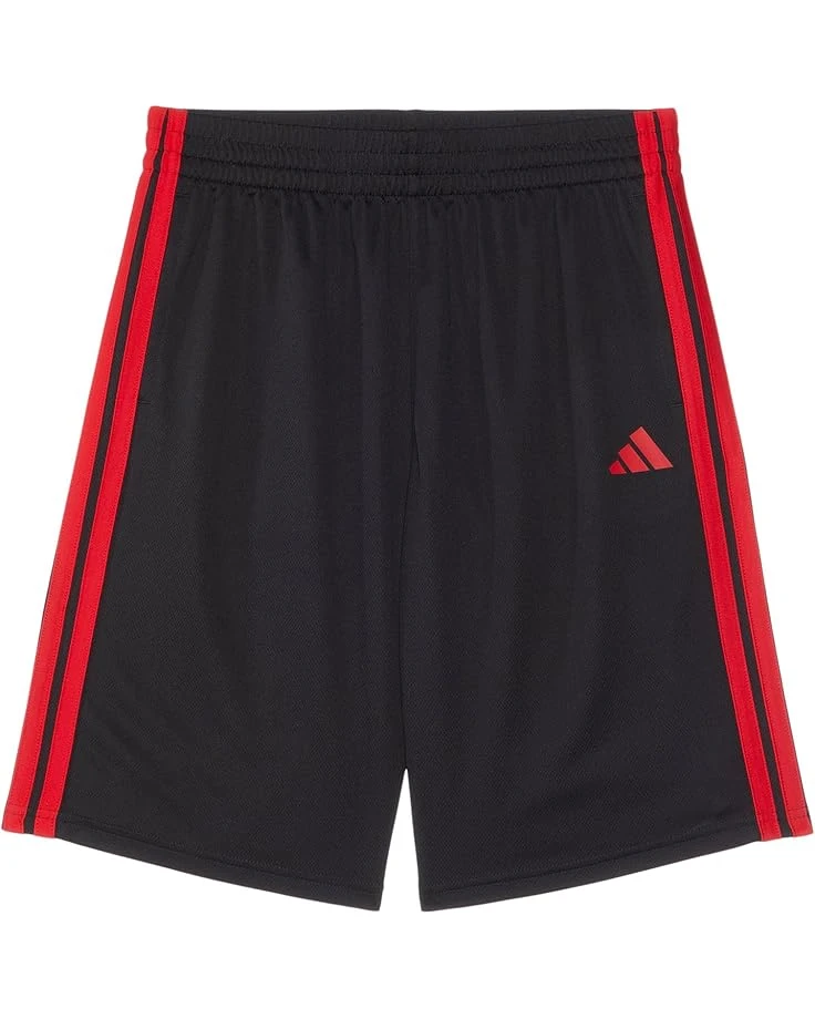 - Simple and sporty, this adidas® Kids Essentials 3-Stripe Shorts are the ones your little one will live in 24/7. Lightweight mesh and an above-the-knee length makes them comfortable and easy to wear. Featuring elasticized waistband, side hand pockets, regular fit, pull-on style, and mid-rise silhouette. 3-Stripes on the sides give them classic adidas style.