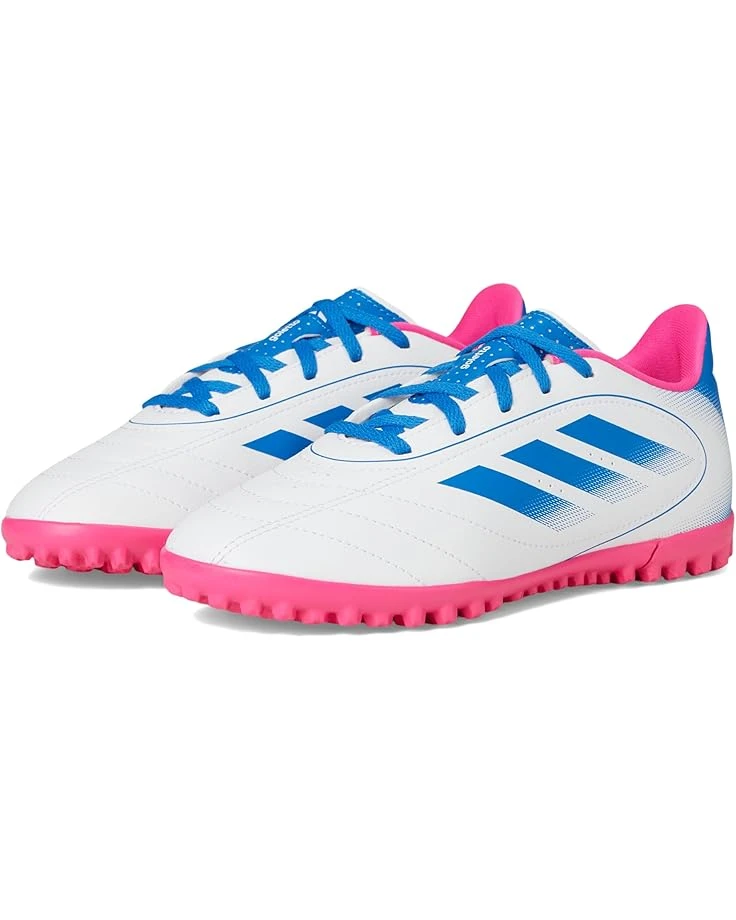 - Score big with style and speed! The adidas® Unisex-Kids Goletto IX Turf Soccer Cleats are designed to dominate the game. Crafted with a durable rubber upper, insole, and outsole, these cleats offer superior grip and control on turf surfaces. The natural rubber lining ensures breathable comfort for long hours of play, while the secure lace-up closure keeps little feet locked in for every kick. Engineered for performance, these cleats deliver lightweight support and a sleek silhouette, empowering young athletes to play with confidence and flair.