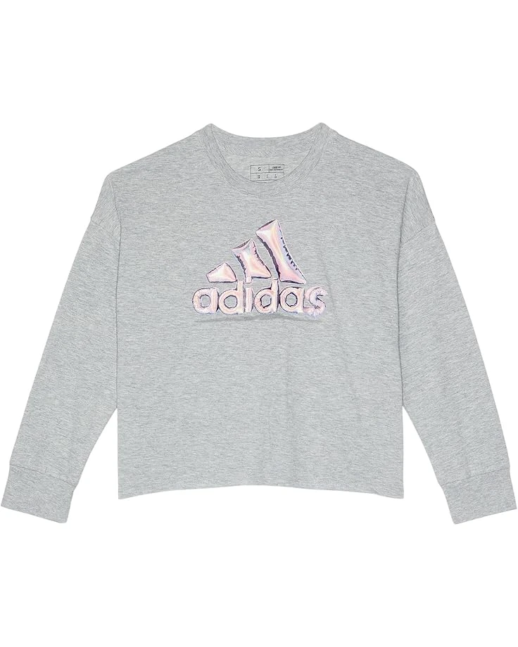 - The basics just got better. This adidas® Kids Long Sleeve Waist Crew Neck Heather Tee for your little one spruces up an everyday silhouette with a creative adidas performance graphic. Soft jersey fabric and a loose, relaxed fit make it an all-around favorite.