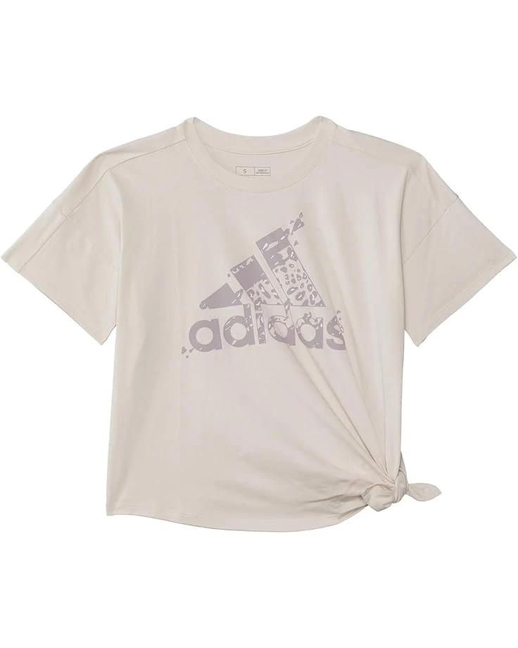 - Keep your little one stylish and comfortable choosing the adidas® Kids Loose Tie Front Tee. This classic crew neckline tee features short sleeves and screen-printed graphics on the center front. Perfect for active play or hanging out with friends, this tee is a must-have for every kid’s wardrobe.