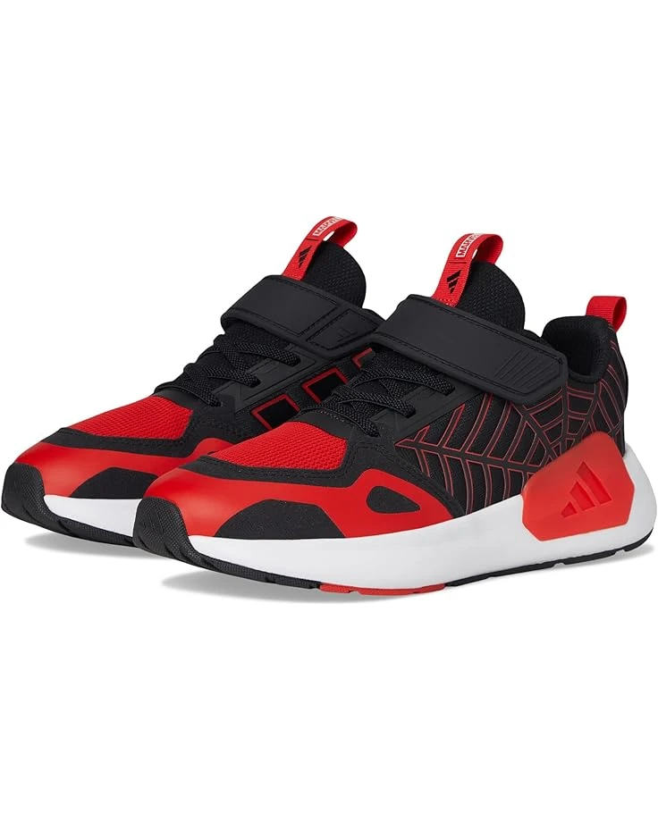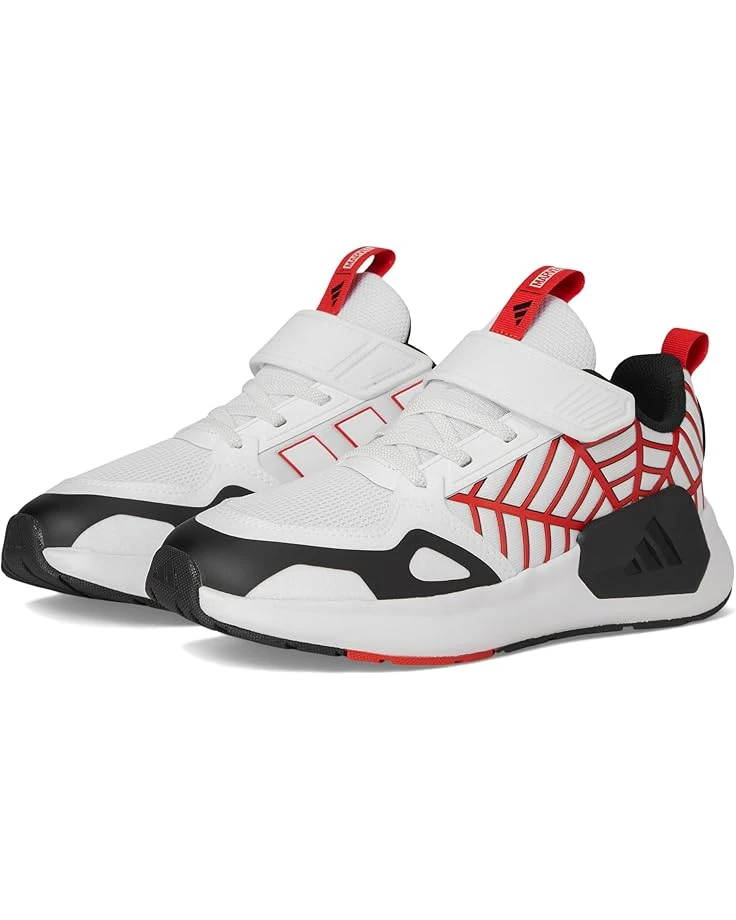 - Get your little superhero ready to swing into action choosing these adidas® Kids Marvel® Spider-Man Runner Sportswear Shoes! Made with durable rubber upper, natural rubber lining, and rubber insole, these shoes are built to last through all their adventures. The elasticized lace front makes them easy to slip on and off, while the padded tongue and collar ensure a comfortable fit. With spider web graphics and an iconic Spider-Man heel patch, these shoes are sure to be a hit with any young fan.