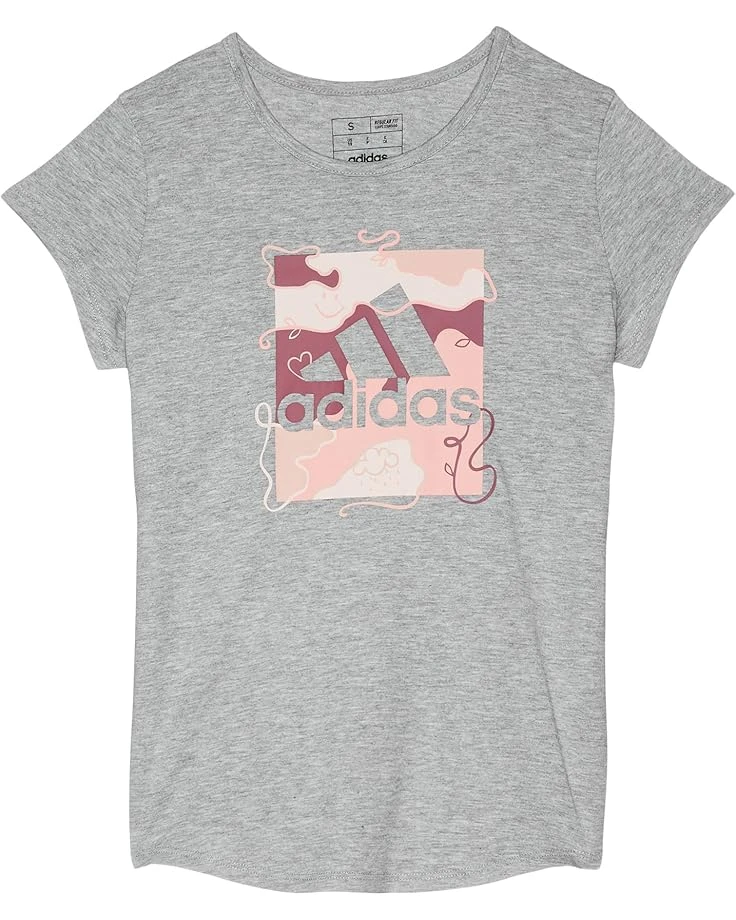 - There are a lot of T-shirts in the world, but some are straight-up essential. The adidas® Kids Short Sleeve Essential Heather Tee has a curvy hem, crew neckline, and cap sleeves with expressive adidas® graphics printed on the front. It’s made with a soft jersey fabric blend that takes your kid’s comfort to the next level.