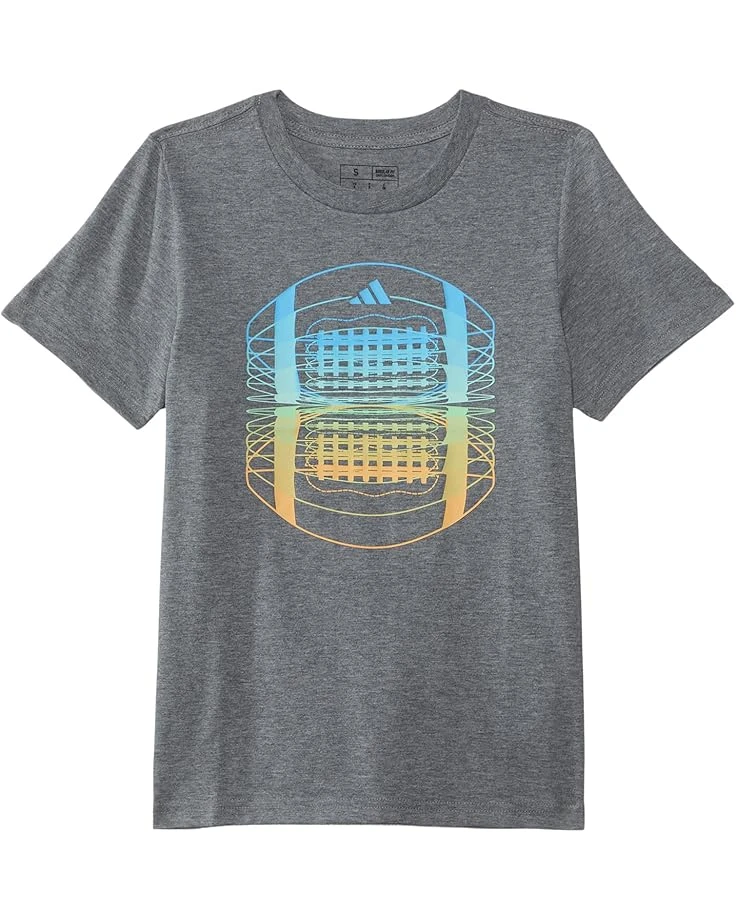 - Create a casual yet polished look for your little one choosing the adidas® Kids SS Football Heather Tee, which features screen-printed echo football with gradient effect and adidas Performance Logo on the center front. It has a crew neckline, short sleeves, and a straight hem.