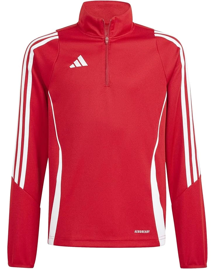 - Stay on your game during training session wearing the adidas® Kids Tiro24 Training Top. It features stand collar with half front zipper closure and long sleeves with elastic cuffs. A doubleknit fabric construction with AEROREADY technology wicks moisture away from your skin. Slim fit, front zip pockets, and stripes on sides/sleeves make the top a specimen of the brand.