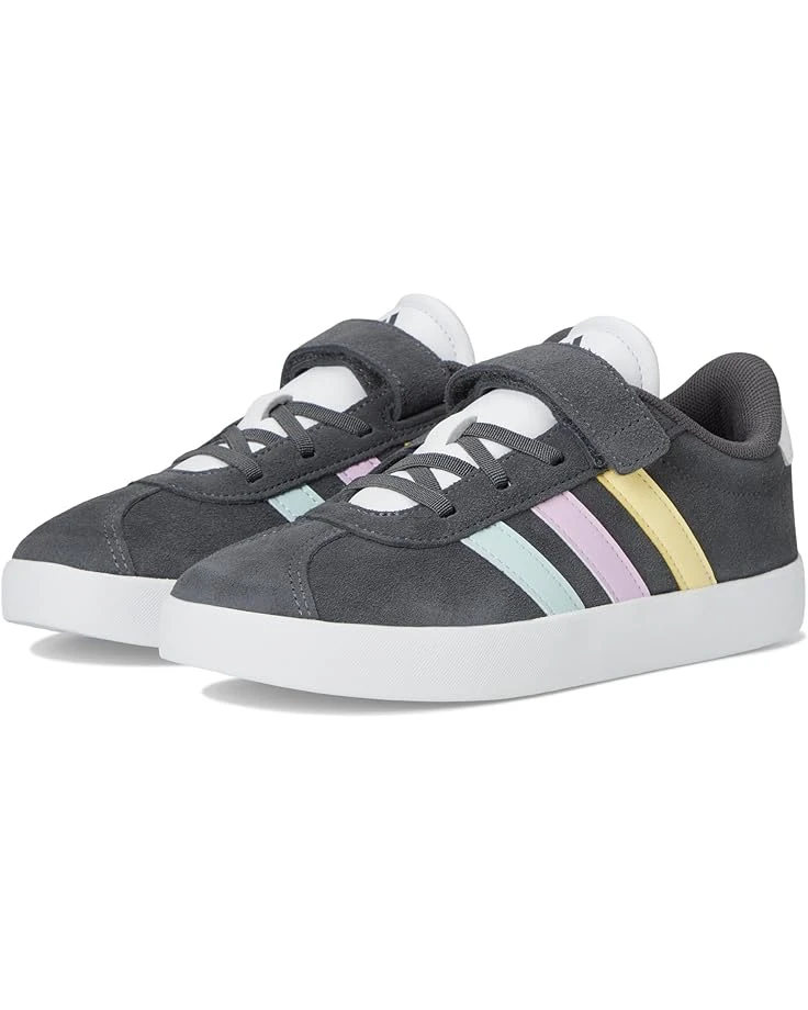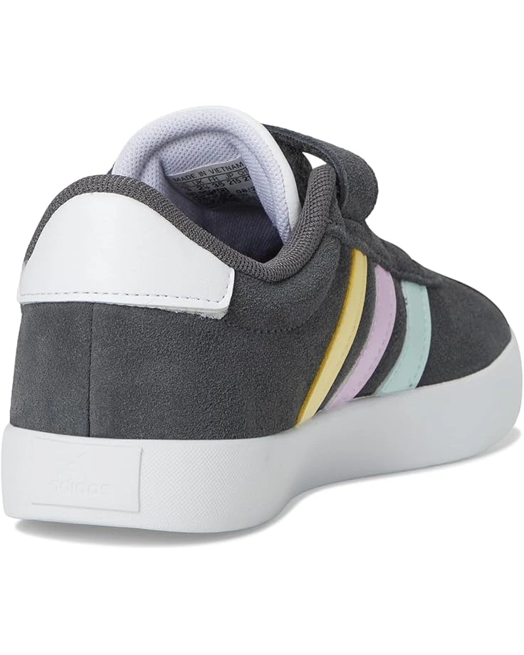 - Comfortable and durable, the adidas® Kids VL Court 3.0 Sportswear Shoes are ready to roll wherever a kid’s curiosity leads. The hook-and-loop straps of these low-top shoes make them easy to put on and take off on the fly, while a suede upper, textile lining, rubber insole, and vulcanized rubber outsole stand up to adventures at the skate park or playground. The lace-up closure further ensures a secure fit and the multicolored three-stripe branding adds an authentic touch.